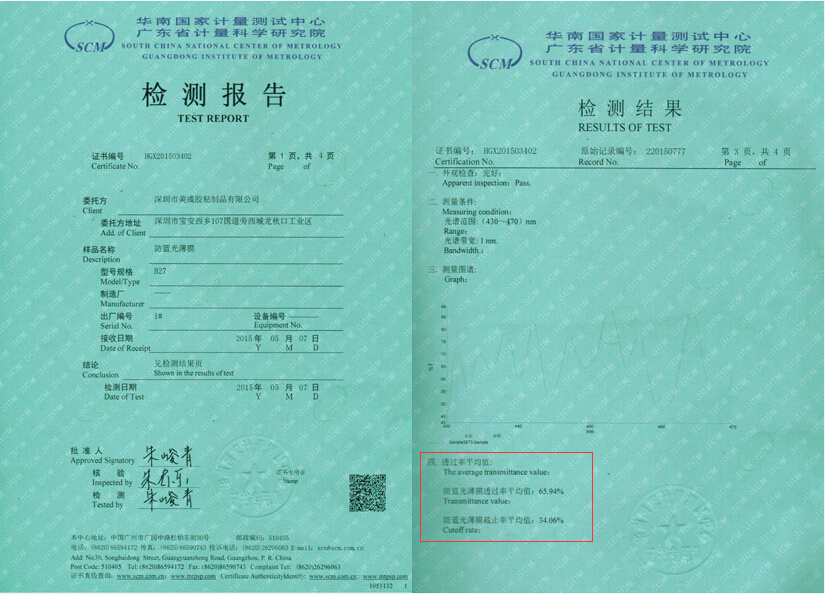 我們把真正具有防藍(lán)光效果的薄膜貼合在鋼化玻璃上,經(jīng)實(shí)際檢測(cè)是可以有效阻隔藍(lán)光30%的